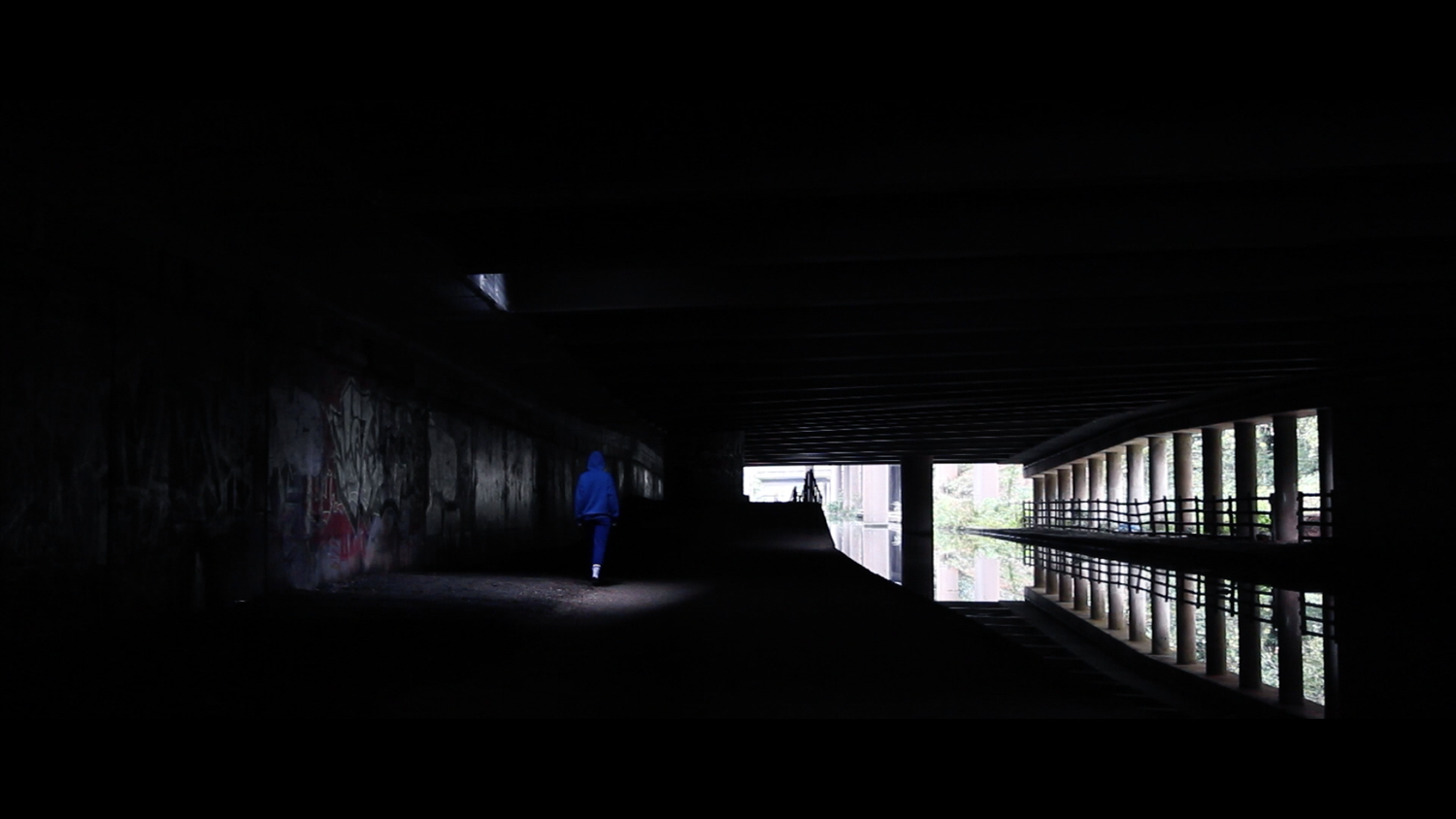 Fleshed Out was a live performance, short film and rework LP, expanding on Gazelle Twin’s 2014 album ‘UNFLESH’. A screening and live performance took place at Barbican Centre Cinema on 25 November 2015, marking the end of the ‘UNFLESH’ world tour in November 2015. The 16 minute film was made in a collaboration with filmmaker Esther Springett (part of the Turner Prize-nominated collective Project Art Works, and who also made the music videos for Belly of the Beast and GUTS). With support from Fierce Festival Birmingham 2015, and the Barbican Centre, the film featured locations beneath spaghetti junction, Birmingham, and the Barbican estate in London and resulted in an avant-garde series of dreamlike snapshots, depicting an abstract origin story for the “blue hoody” figure, whose fleeting presence haunts real-world environments and vulnerable landscapes.